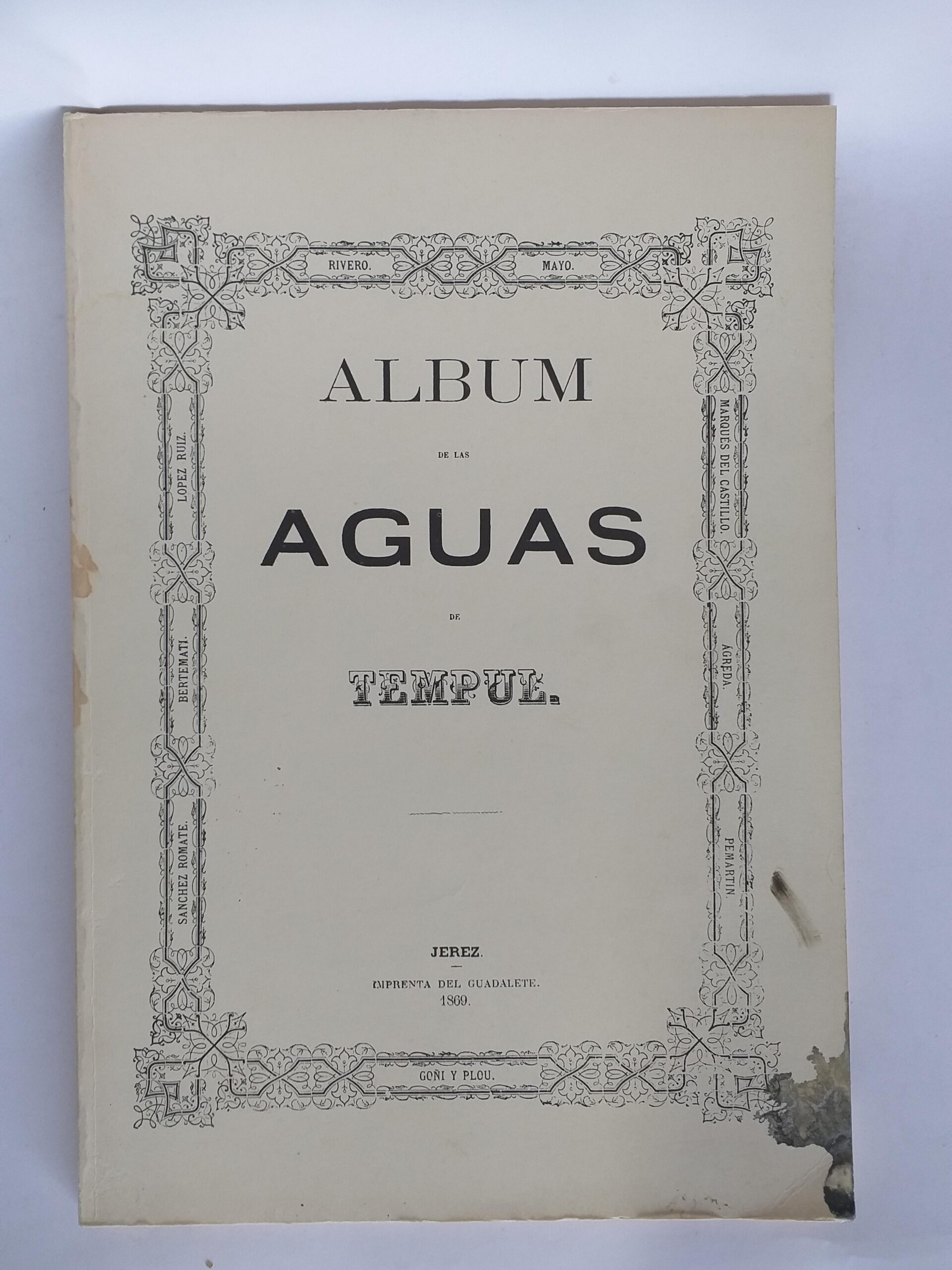 Sinopsis: Reproducción con la recopilación de los artículos, reseñas y poesías que publicó la prensa española con motivo de la inauguración de la traída de aguas, el día 16 de julio de 1869. Está un poco manchado en el canto como se ve en la foto.