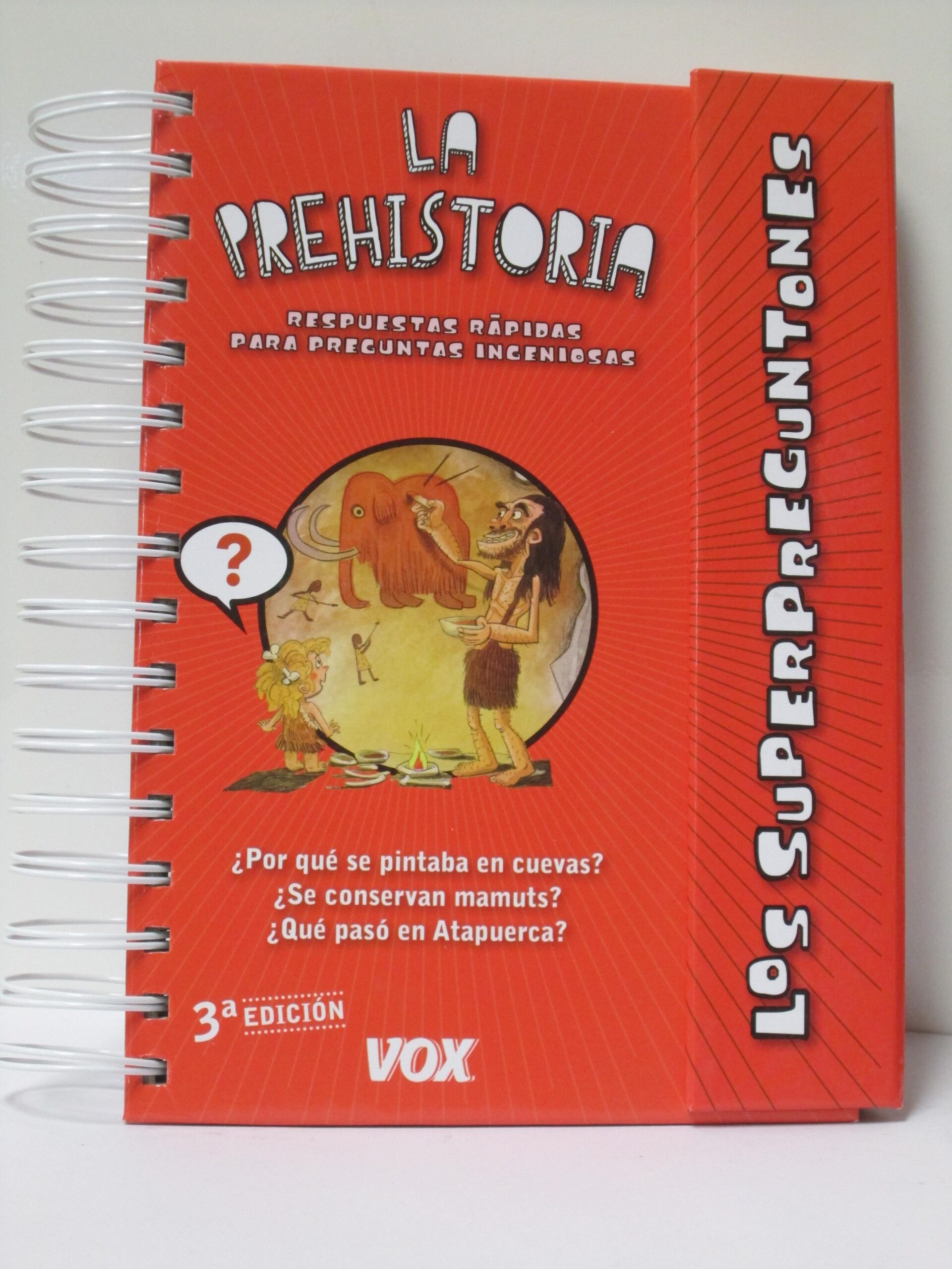 Sinopsis: Bonita edición con ilustraciones a color. Todos empezamos a temblar cuando un Superpreguntón nos mira directamente a los ojos y abre la boca para decir ¿POR QUÉ? ¿Cómo se vivía en el Paleolítico? ¿Los humanos cazaban mamuts? ¿Por qué pintaban en cuevas? ¿Tenían herramientas? ¿Qué pasó en Atapuerca? ¿Cómo empezó la agricultura? ¿Se inventó el pan? ¿Cuándo se inventó la rueda? ¿Quién habitaba la península Ibérica al final de la prehistoria?