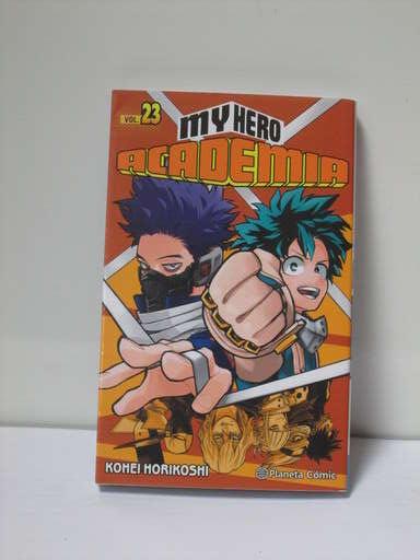 Sinopsis: Número 23 de este manga. ¡La nueva técnica de Midoriya pinta peligrosa! ¡Desde que le salió esa cosa negra está muy raro! ¿¡Eh!? ¡Pero si están todos! ¡Una gran batalla con los dones de todos ellos! La lucha de entrenamiento final parece que concluye. ¿¡Quién ganará!? ¡Plus ultra (más allá)!