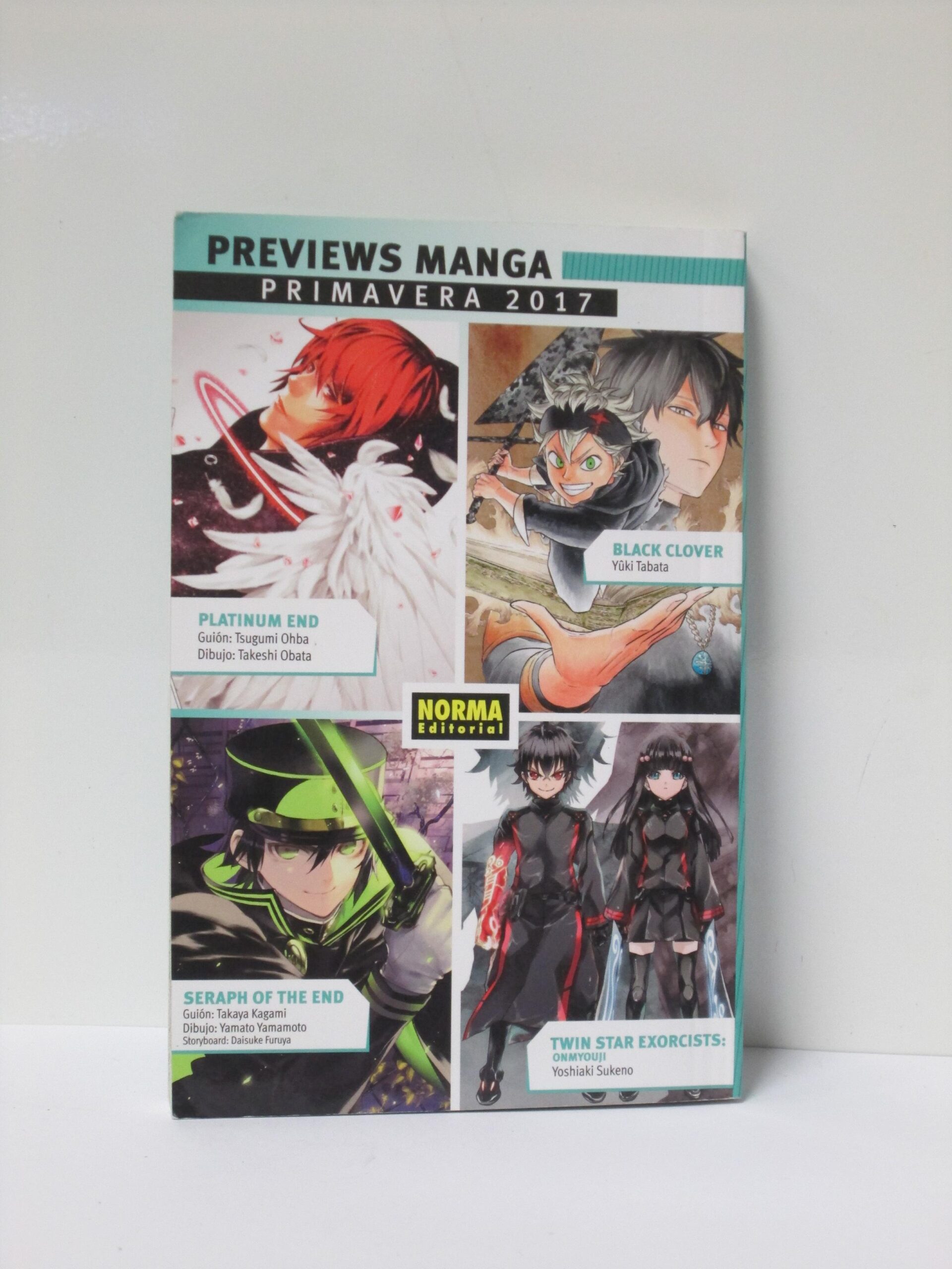 Sinopsis: Libros de cómics manga, contiene 4 historias en castellano: Platinum End, Black Clover, Serap of the end y Twin Star Exorcist de excelentes autores como Takeshi Obata, Yuki Tabata, Takaya Kagami o Yoshiaki Sukeno.